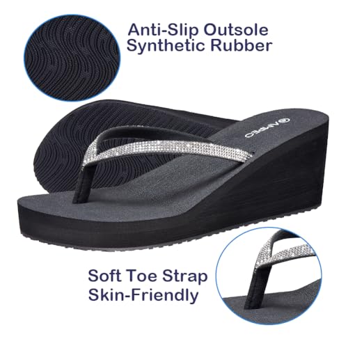 Ampeo Women's Wedge Sandals Rhinestone Thong Platform Flip Flops 1