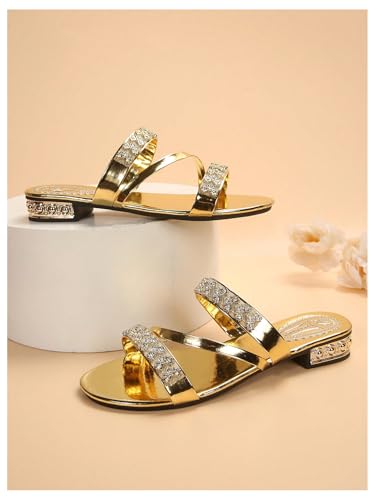 • Exquisite and high-end rhinestone design adds sparkle to these fancy golden sandals, fully brings out women's charming and chicness
