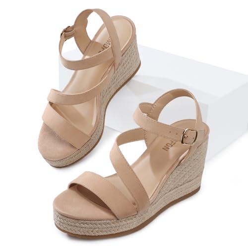 TEMOFON Wedge Sandals for Women Platform: Espadrille Ankle Strap Buckle Wedge - Comfortable Dressy Summer Womens Sandals 5