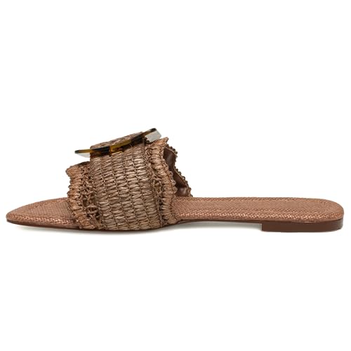 Raffia Flat Sandals for Women Woven Rattan Buckle Slide Sandals Summer Slip On Beach Sandals 7