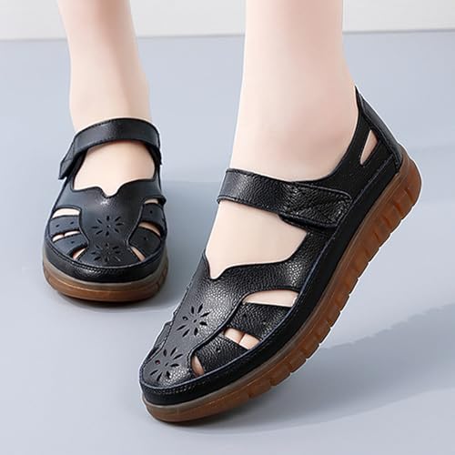 Women's Closed Toe Leather Sandals,Summer Comfort Non-slip Oxford Orthopedic Ankle Strap Casual Dress Mary Jane Shoes 6
