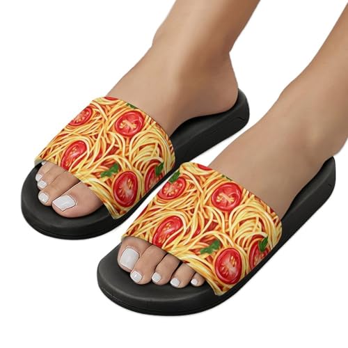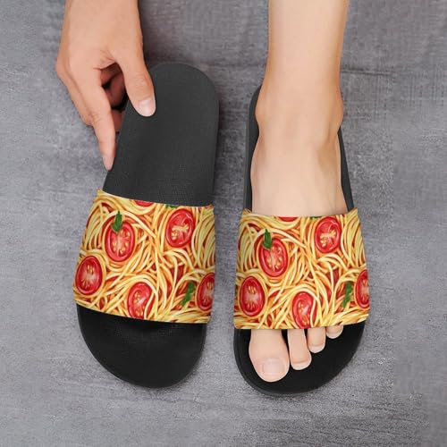 HOT ! Spaghetti Pasta Noodles Tomato Sauce House Slippers for Women Men Lightweight Open-toe Slide Shoes for Bathroom Swimming Beach