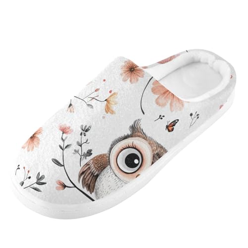 JUNZAN Cartoon Sweet Owls White Womens Cotton House Slippers Non Slip Memory Foam Hotel Slippers for Hospital Funny Presents 6-7 5