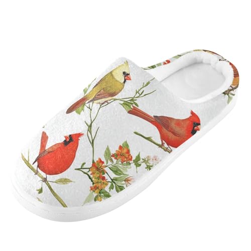 Funny Northern Red Birds White Women Cotton Slippers Closed Toe Memory Foam Home Slippers for Hospital Funny Presents 6-7 4