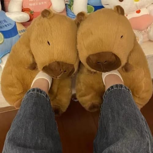 HOT ! Cute Capybara Slippers, with One Random Key Chain Capybara Gift for Women Girls Kids, Fuzzy Warm Non Slip Winer Shoes Faux Fur Plush Cozy Indoor House Sandals Soft Cloud Slides Bedroom Funny Slippers