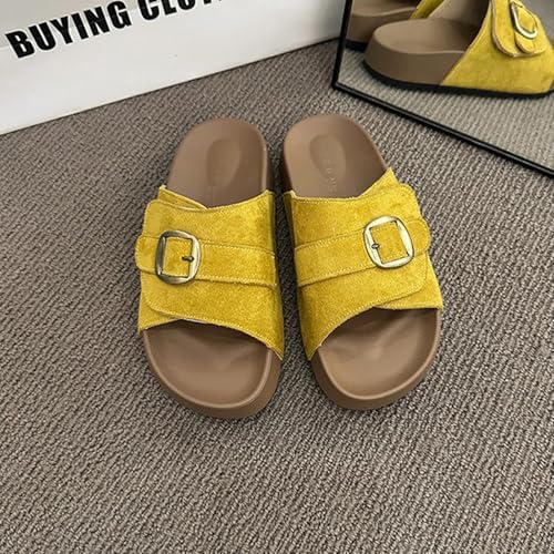 • Sunshine-Ready Comfort: These casual platform sandal featuring breathable open-toe design in cheerful yellow and neutral almond, these women's sandals keep feet cool while providing all-day arches support