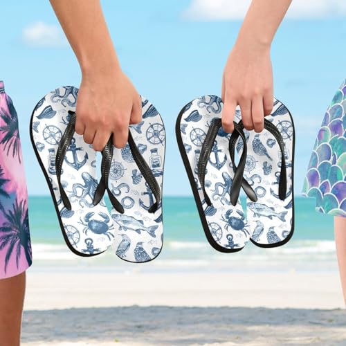 HOT ! ALAZA Marine Animal Octopus Watercolor Flip Flops for Women Fashion Beach Slippers Comfort Mens Flip Flops Non-Slip Rubber Shower Slippers Sandal for Hotel Travel Sport,XS