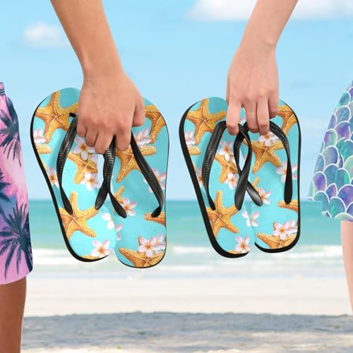 ALAZA Yellow Starfish Pink Cherry Blossoms Flip Flops for Women Fashion Beach Slippers Comfort Mens Flip Flops Non-Slip Rubber Shower Slippers Sandal for Hotel Travel Sport,XS 6