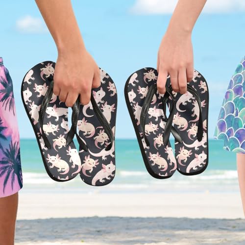 HOT ! ALAZA Cute Axolotl Pattern Flip Flops for Women Fashion Beach Slippers Comfort Mens Flip Flops Non-Slip Rubber Shower Slippers Sandal for Hotel Travel Sport,XS