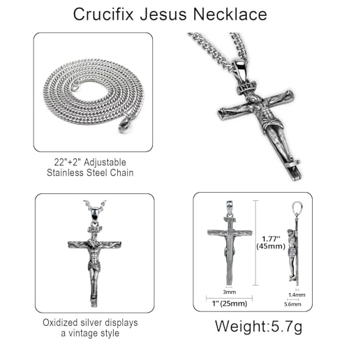 • Premium Sterling Silver: This Crucifix necklace meticulously crafted from 925 Sterling Silver, ensuring a timeless elegance and durability. The accompanying chain boasts premium-grade Stainless Steel,To add a touch of vintage charm, the pendant's surface undergoes a meticulous oxidation process, enhancing its antique allure.