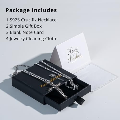 HOT ! 925 Sterling Silver Crucifix Necklace, Jesus Cross Necklace for Men, Christian Jewelry for Men Women, Protection Amulet Pendant