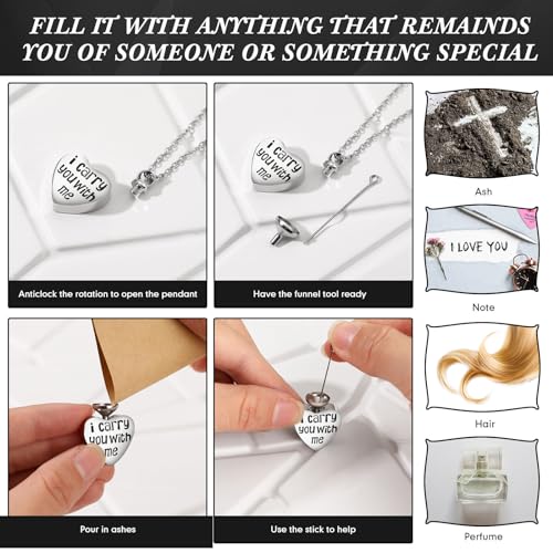 • Multipurpose Memorial Jewelry: these urn jewelries for human ashes serve multiple purposes, not only do they hold a small piece of your departed loved ones or pets but also act as a subtle yet stylish jewelry piece; Every glance at the necklace recalls a cherished memory, making you feel like the loved one is still there with you