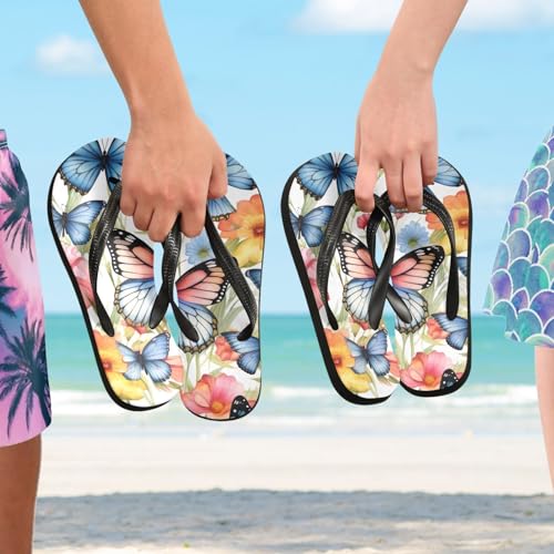 Womens Flip Flops Blue Butterfly FlowerNon-Slip Casual Beach Slippers Rubber Sandals214B2609 1