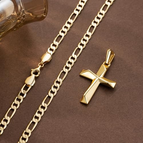 • [PAIRED WITH FIGARO CHAIN] Paired with a 5mm Figaro chain, the alternating link pattern adds structure and dimension to the mens cross necklace gold. It complements the sharp design of the chain cross necklaces and injects a dose of retro-cool flair, enhancing the streetwear vibe