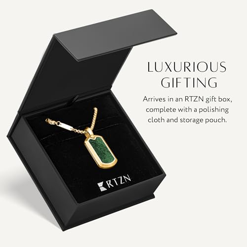 RTZN® Jade Necklace for Men – Premium Green Jade Pendant with Stainless Steel Box Chain 22" + 2" Extension – 18K Gold Plated Dog Tag, Square & Cross Pendant Necklaces – Luxurious Men's Jade Jewelry 5
