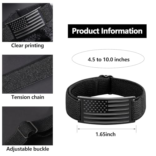 Patriotic American Flag Bracelets for Men Boys - Adjustable Black Military Elastic Stretch Strap with Inspirational Bible Verse - Veteran Gifts, Soldier Appreciation Jewelry 5