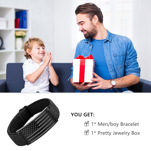 HOT ! Patriotic American Flag Bracelets for Men Boys - Adjustable Black Military Elastic Stretch Strap with Inspirational Bible Verse - Veteran Gifts, Soldier Appreciation Jewelry