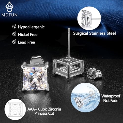 HOT ! MDFUN 5 Pairs 316L Stainless Steel Earrings Set 3-7MM Hypoallergenic Princess Cut Cubic Zirconia Square Stud Earring Jewelry for Women and Men