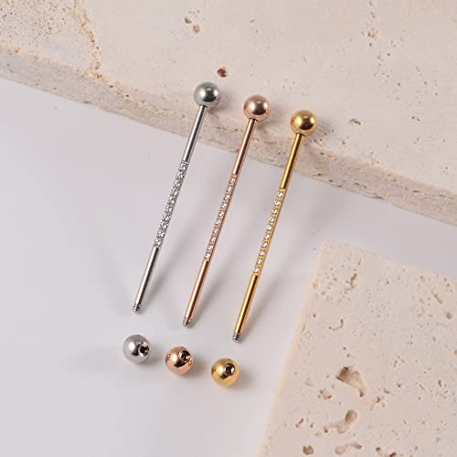 • SIZE: 14 guage (1.6mm), bar length: 38mm (11/2 Inch), ball dia.: 5mm. Color: Available in gold, rose gold and silver.