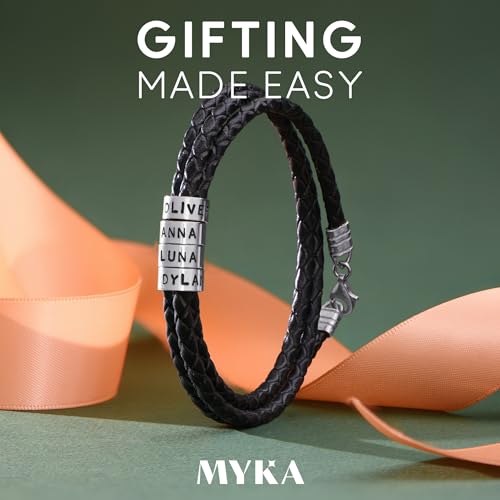 Personalized Braided Leather Bracelet with Silver or Gold Beads for Him, Men - Custom Gift for Father's Day - Genuine Leather - Engraved Sterling Silver or 14K Solid Gold Beads - By MYKA 6