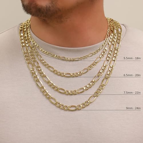 Nuragold 14K Real Yellow Gold Figaro Link Chain Necklace 16"-30" (2mm-7.5mm) Italian Jewelry for Men & Women 4