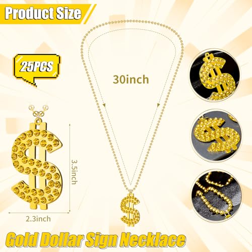 • GREAT VALUE SET: You'll receive 25 gold dollar sign necklaces in plenty of quantity for your dress-up and party decorating needs