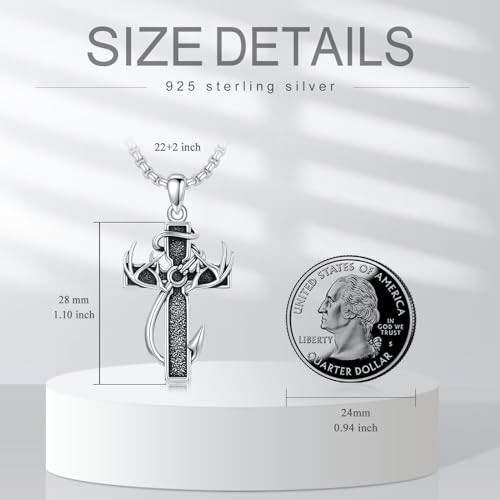 Cross Necklace for Men - 925 Sterling Silver Cross Deer Antler Fish Hook Pendant - Hunting Jewelry Gifts 22+2 1