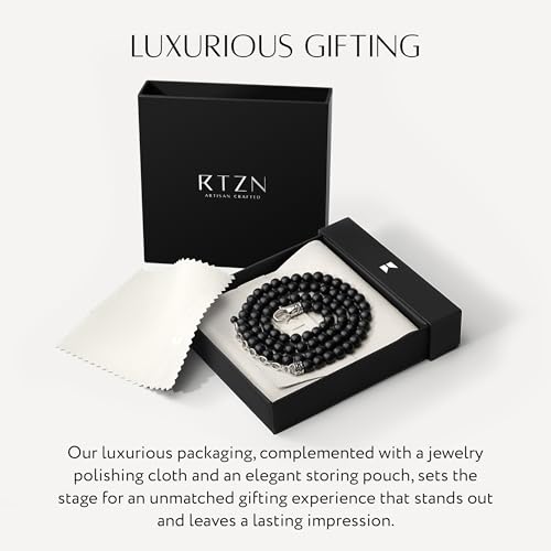 • Gift Ready Packaging: Our black bead necklace will arrive in a luxurious gift box, complete with a storage pouch and polishing cloth, making it a perfect present for any occasion. Whether it's a birthday, anniversary, holiday, or just because, gift the RTZN experience and make every moment extraordinary!