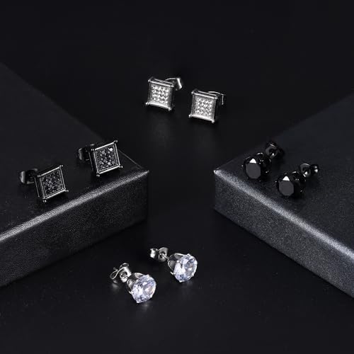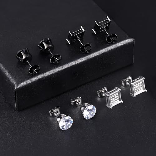 • 4 PAIRS STUD EARRINGS- 4 Pairs Stud Men Earrings in This Earrings Set, Includes Black Round CZ Earrings,Clear Round Cubic Zirconia Earrings,Black Square Earrings and Silver Square Earrings. Different Styles and Color for You to Choose and Match. Make You Be Unique and Attractive Everyday