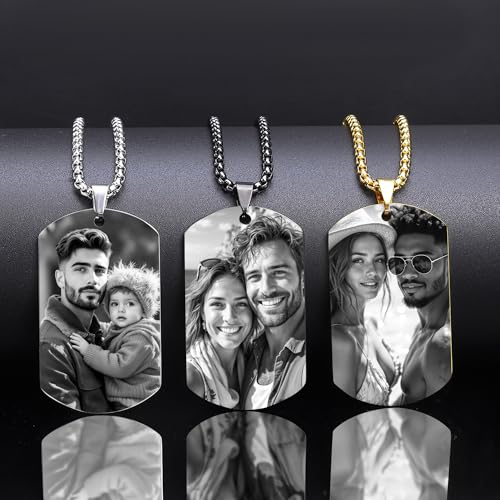 Picture Necklace Personalized Photo for Men - Custom Engraved Photo & Text Dog Tag Pendant for Boyfriend, Husband, Dad - Birthday, Valentine's Day, Fathers Day Gift 5