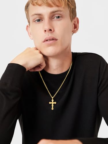 • HIGH QUALITY MATERIAL - This exquisite 18K gold crucifix necklace, hypoallergenic, high polished, more shiny than ordinary material crosses and comfortable to wear. Decades of jewelry making craftsmanship and experienced goldsmiths will make the gold cross necklace more durable.