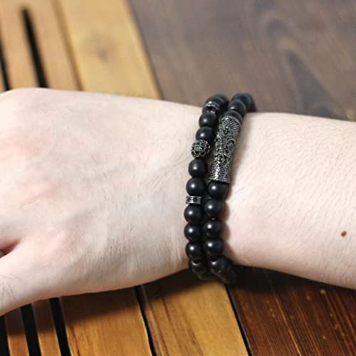 HOT ! 2Pcs Healing Crystal Beaded Bracelet for Men Women Handmade 8MM Beads Stretch Bracelet Protection Bracelets Bring Good Luck Prosperity and Happiness Gifts for Men Women