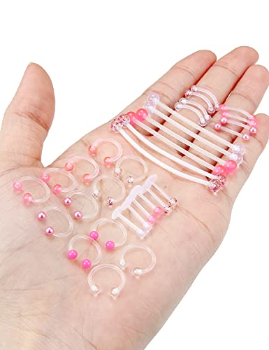 HOT ! Jenxnjsjo Clear/Pink/Purple Lip Septum Rings Eyebrow Industrial Smiley Piercing Jewelry Plastic Cartilage Helix Tragus Daith Earrings Vertical Labret Medusa Retainers Kits for Surgery Work Sports