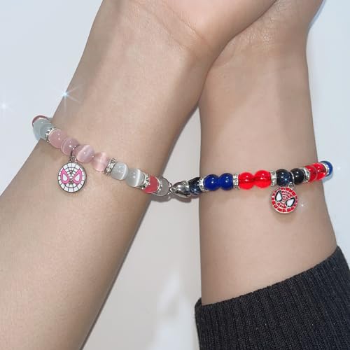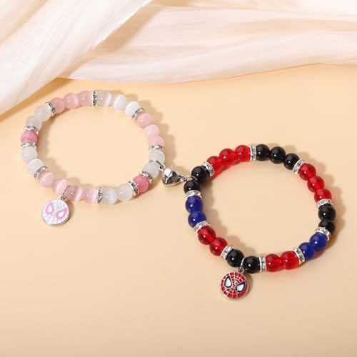 • SPIDER MATCHING BRACELETS: Inspired by the features of classic characters, we designed this matching Spider-Gwen heart bracelet for couples and friends. When two bracelets come together, they attract each other. This bracelets can make separated couples or friends feel connected, no matter how far apart you are, this pair of long distance bracelets will make you feel together. The meaningful spider themed design, definitely a great gifts for her/him.