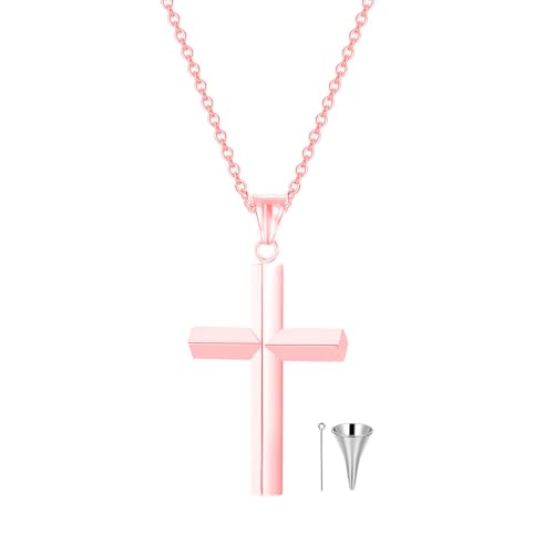 HOT ! 10K Gold Cross Urn Necklace for Ashes, 10K/14K/18K Real Gold Cross Cremation Necklace Jewelry for Women Men Keepsake Pendant Necklace Memorial Locket Ash Holder