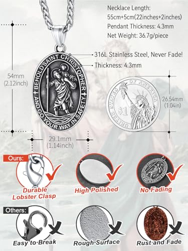 • Premium Materials: Made from high-quality stainless steel, this Saint Christopher pendant necklace combines timeless elegance with durability. Resistant to tarnish and rust, it ensures long-lasting beauty and reliability, perfect for everyday wear or special occasions