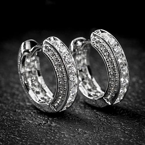 White Gold 925 Sterling Silver Iced 5A Cz Cool Hoop Earrings For Men Women Chanel Set Hypoallergenic Unisex Small 12mm Cartilage Huggie Hoops Jewelry Gifts For Dad Fathers 5