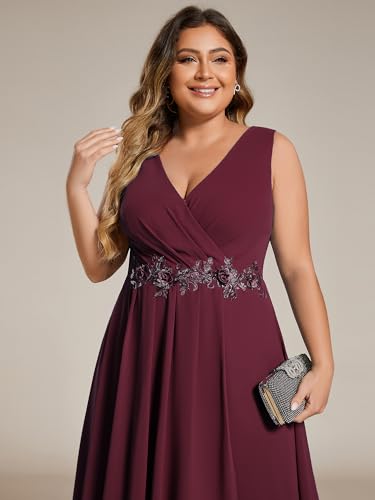 More information about Ever-Pretty Women's Summer Chiffon Sleeveless V Neck Applique Plus Size High Low Formal Wedding Guest Dresses 41926-DA