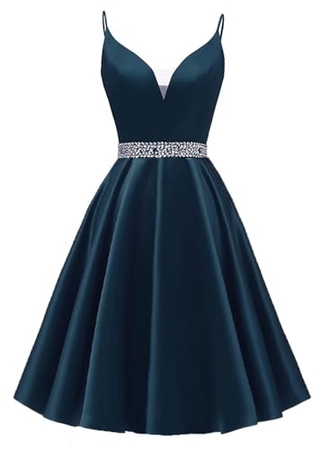 A-line Satin Prom Dresses Sleeveless for Women, Short V Neck Spaghetti Straps Homecoming Dresses Evening Dresses 6