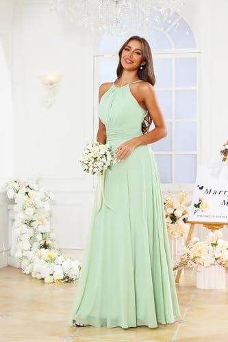 SoDigne Halter Pleated Long Bridesmaid Dresses for Women A Line Chiffon Corset Wedding Guest Gown 1