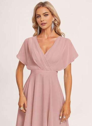 • Origin: Imported Chiffon V Neck Short Ruffled Sleeve Bridesmaid Dresses for Women