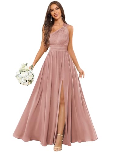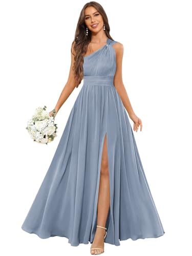 OFEECHUN Women's Chiffon One Shoulder Bridesmaid Dresses Long Pleated A Line Evening Formal Gown with Slit 1