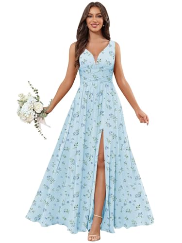 More information about Ufashion Women's V Neck Bridesmaid Dresses for Wedding Long Chiffon Pleated Formal Dress Evening Gown with Slit
