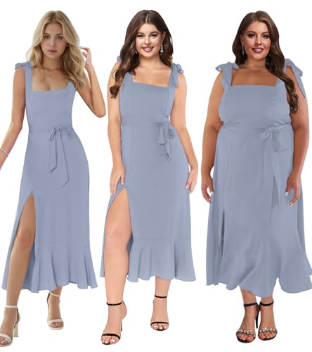 • Feature: Ladies Event Dresses designed with square neck, tie up straps, flowy ruffle slit midi skirt, smocked back with detachable sash, perfect for all maids or formal occasion, semi formal event etc