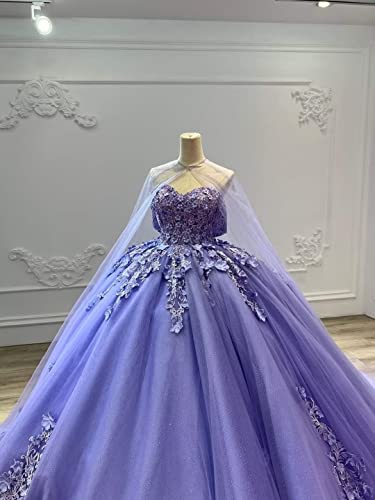HOT ! Mauuwy Tulle Quinceanera Dresses Lace Ball Gown Puffy Sweet 16 Dresses for Women Off Shoulder Party Dress with Cape Y110