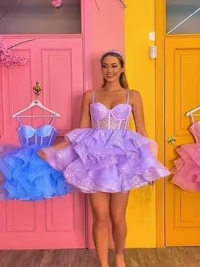 • Feature:Baby Blue Homecoming Dresses for Teens 2025,Glitter Tulle Corset Prom Dresses for Women Short,Spaghtti Straps Satin Tiered Mini Cocktail Party Gowns,Sweetheart Neck Girls Wedding Party Dresses,Puffy Tulle Pincess Birthday Dresses,A-Line Formal Evening Gowns,Sparkly School Dance Dresses for Juniors,Lace up Back,Fully Lined,Build-in Bra,Mini Length.