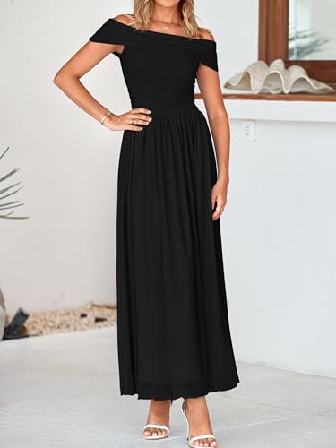 • Design: Our womens dresses for wedding guest features off the shoulder neckline and ruched waist detailing for a feminine silhouette. The flowy pleated design adds graceful movement,creating a chic and romantic look perfect for weddings,parties,or date nights.