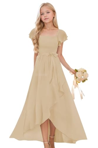 More information about Short Sleeve Flower Girl Dresses for Wedding High Low Ruffle Chiffon Bridesmaid Dress for Juniors