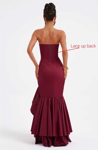 • Fabric: This strapless prom dresses are made of high quality ruffles satin fabric, soft, comfortable, skin-friendly, good touch feeling, with chest pads inside, suitable for most body shape.Ruched Satin Bridesmaid Dresses for Wedding, Mermaid Prom Dresses with Slit, Bodycon Tube Cocktail Party Club Goowns with Ruffle Trim