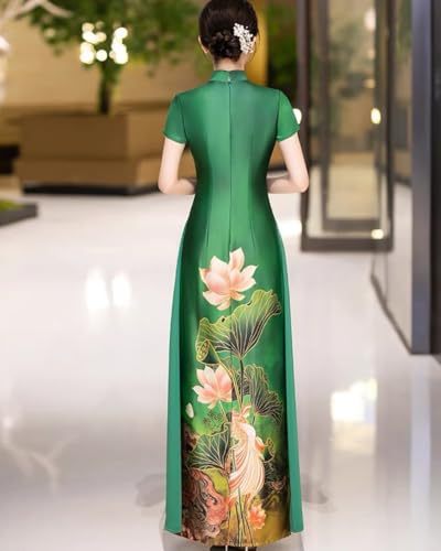 Summer Short SleeveTraditional Ao Dai Cheongsam Qipao Dress with Lotus Flowers for Wedding,Party,Evening Wear 3